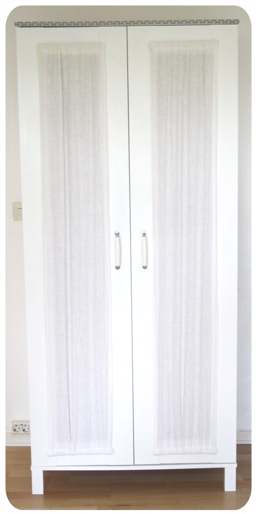 einen neuen Vorhang in der Flurecke aufgehängt,