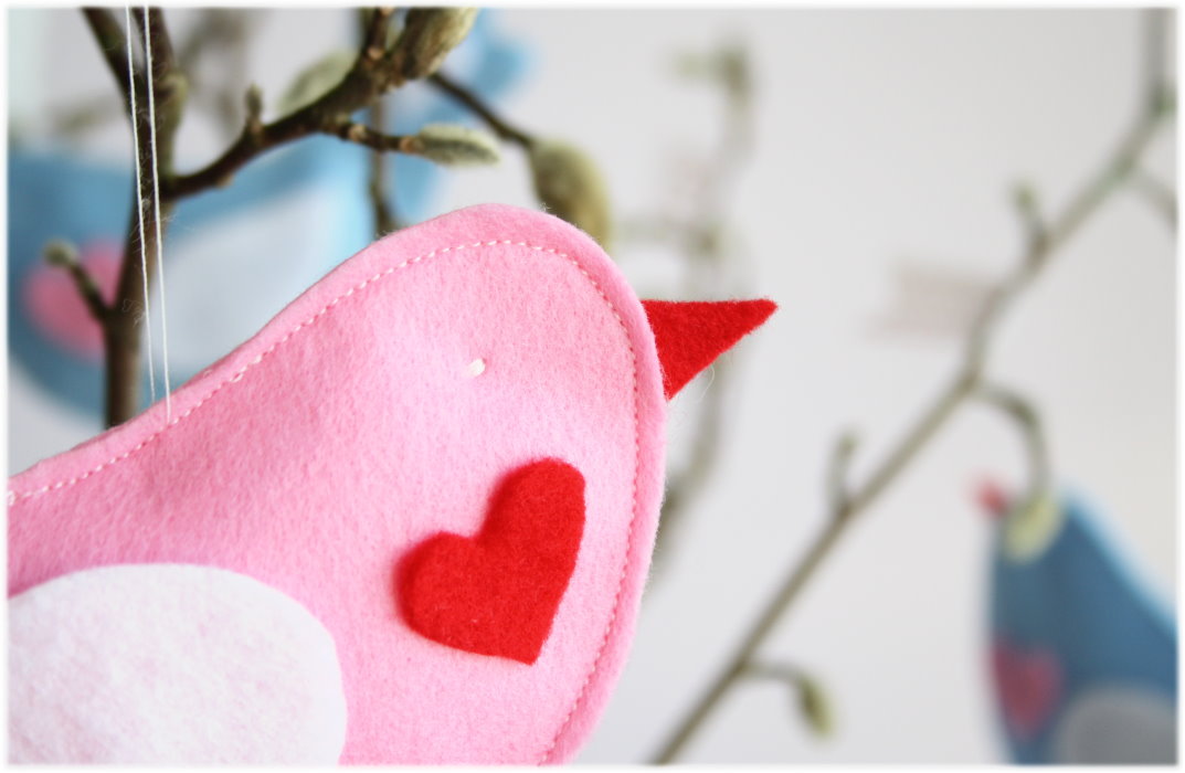 Ich erinnere mich dunkel daran, das meine Oma auch so Filzvögel am Osterstrauch baumeln hatte- und wir Kinder die nienieniemals nicht anfassen durften, aber so gerne wollten weil sie so weich aussahen ;).