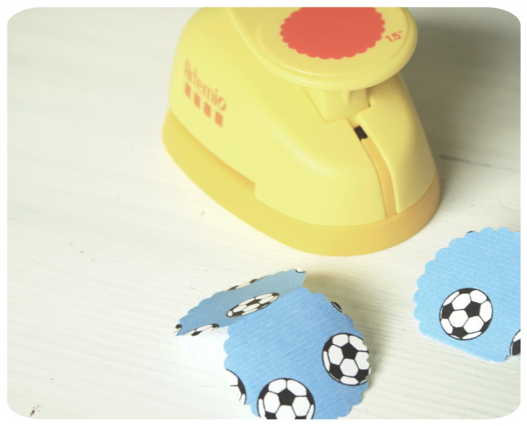 Einfach Fußballpapier nehmen und mit der Stanze (wahlweise Schere) ausstanzen: