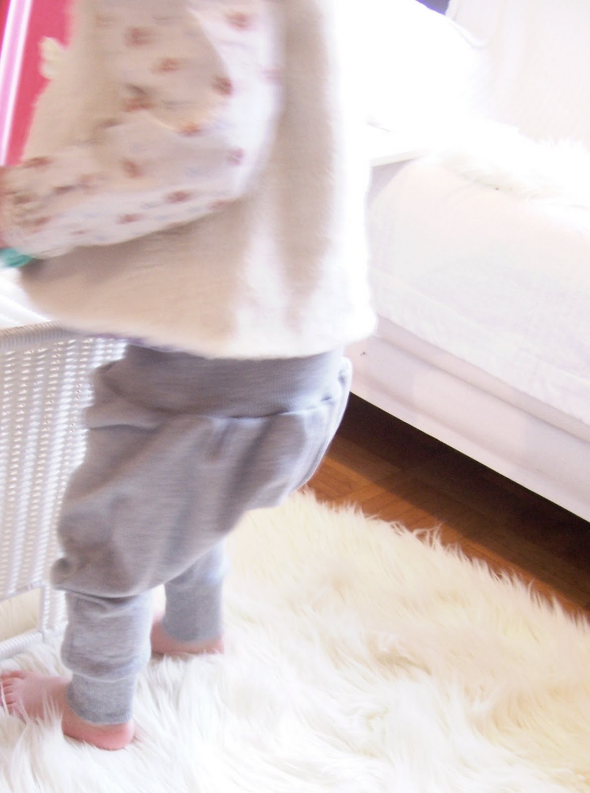 Leider wollte das Model nicht stillhalten, aber offenbar findet sie die Buxe auch super. Kein Wunder, kann man darin doch wunderbar herumtoben und für die Windel ist auch ausreichend Platz!